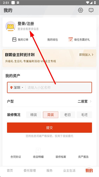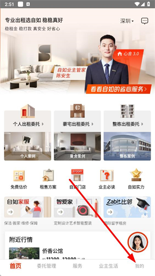 1、在自如業(yè)主app首頁(yè),點(diǎn)擊右下角我的選項(xiàng),進(jìn)入個(gè)人中心頁(yè)面。