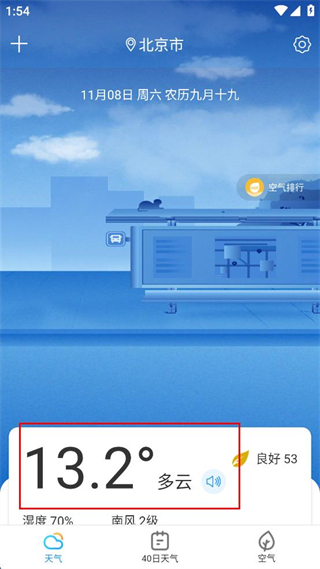 2、進入北京市天氣頁面,查看當(dāng)前氣溫和天氣狀況。