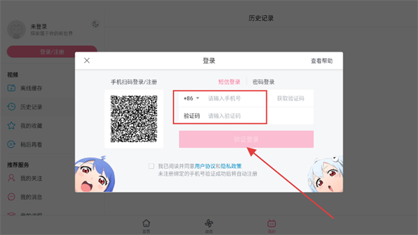 3、輸入手機號、驗證碼,再點擊驗證登錄即可。