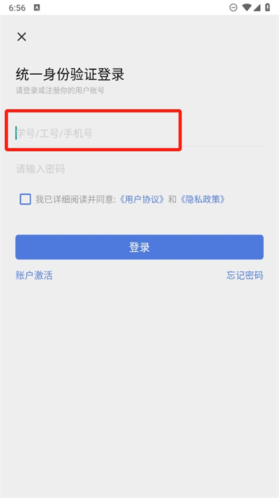 4、激活賬號需要自己的學(xué)號或者工號才行,并輸入真實的姓名和身份證號才能夠正式的激活并使用哦。