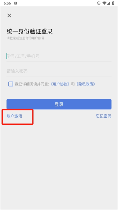 3、第一次進行賬號登錄的同學(xué)或者老師一定要賬號激活,只有賬號激活了才能正式進入并使用該軟件;