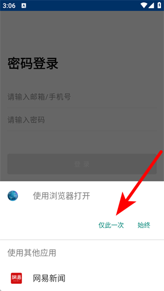 2、在彈出的選擇打開(kāi)方式中,點(diǎn)擊僅此一次使用瀏覽器打開(kāi)頁(yè)面。