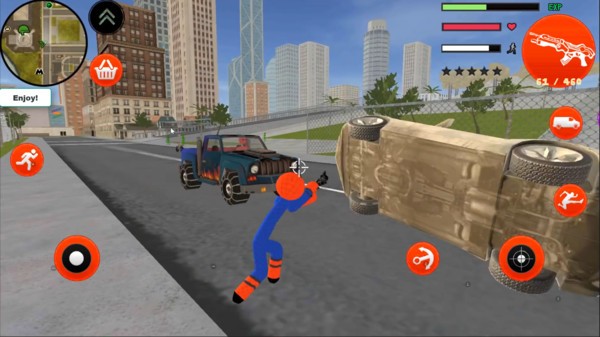3、加入游戲,開啟精彩的火柴人冒險,成為真正的城市和平守護者。