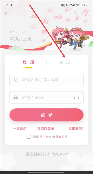 3、登錄選擇頁面點擊“注冊”,切換至注冊界面。