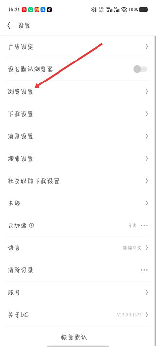 3、在設(shè)置頁面,點擊瀏覽設(shè)置選項。