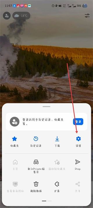 2、在彈出的菜單中,點擊設置選項。