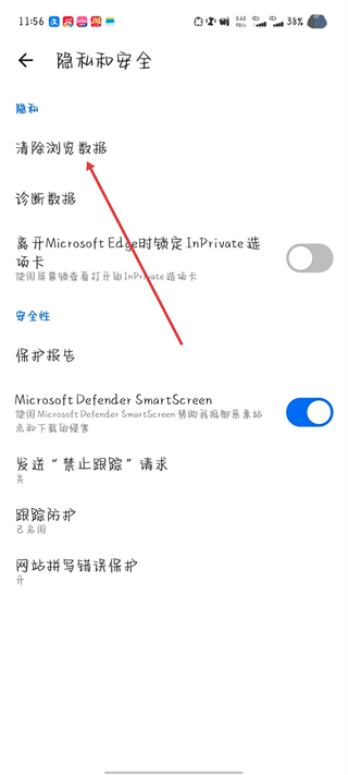 4、在隱私和安全頁面,點擊清除瀏覽數(shù)據(jù)。
