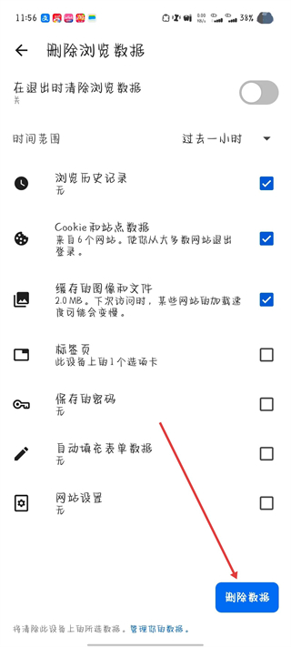 5、選擇要清除的數(shù)據(jù)項,點擊刪除數(shù)據(jù)。