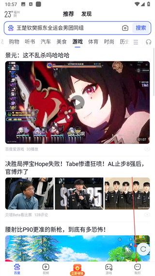 1、打開百度極速版進(jìn)入首頁,點(diǎn)擊首頁頂部導(dǎo)航欄中的三圖標(biāo),進(jìn)入全部頻道頁面。