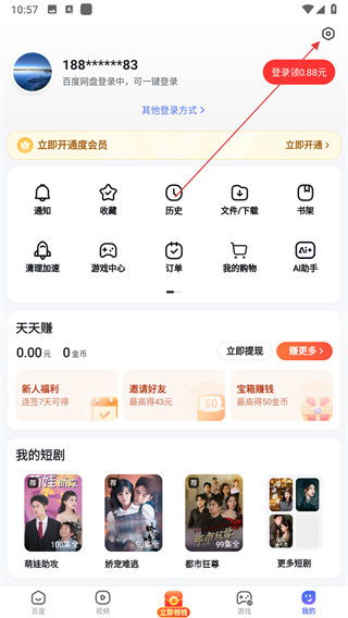 2、在我的頁面,點(diǎn)擊右上角的設(shè)置圖標(biāo)。
