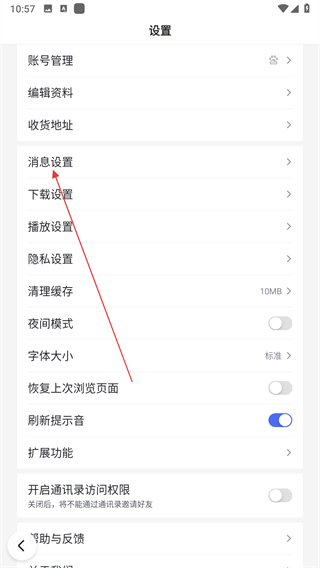 3、在設(shè)置頁面,點(diǎn)擊消息設(shè)置選項(xiàng)。
