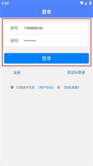 4、注冊(cè)完成后返回登錄頁(yè)面,輸入賬號(hào)和密碼,點(diǎn)擊登錄按鈕完成登錄。
