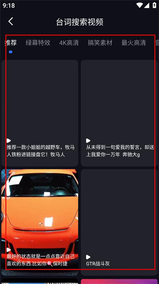 4、進(jìn)入臺詞搜索視頻頁面,即可查看推薦等分類下的視頻內(nèi)容。