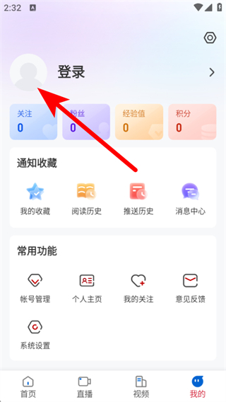 2、在個人的頁面,需要點擊登錄的區(qū)域,彈出登錄選項界面。