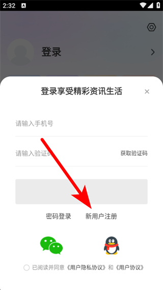 3、在界面中,點擊新用戶注冊的按鈕,進入賬號注冊的頁面。