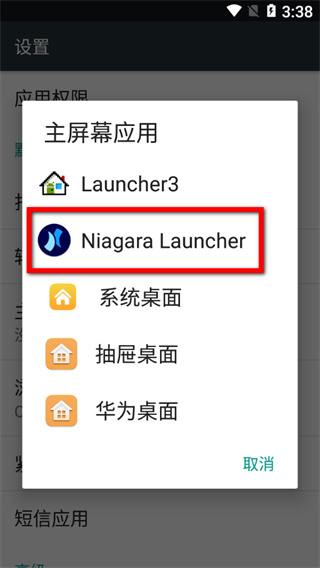 4、在選擇框中,點(diǎn)擊Niagara Launcher選項(xiàng),即可將其設(shè)置為默認(rèn)啟動(dòng)器。