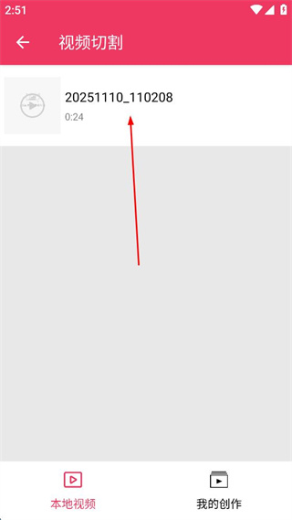 2、在視頻切割頁面選擇要切割的本地視頻,進(jìn)入視頻切割編輯頁面。