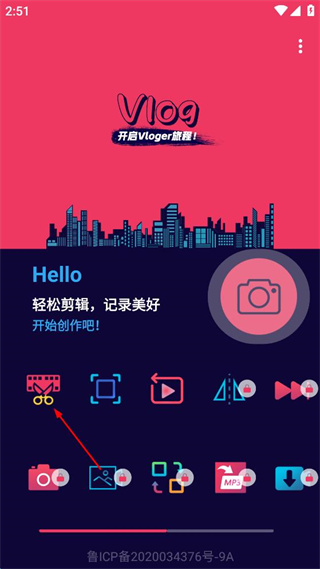1、點(diǎn)擊軟件界面的視頻切割功能圖標(biāo),進(jìn)入視頻切割頁面。