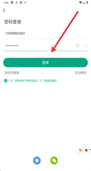 4、輸入手機(jī)號(hào)和密碼,勾選“同意《咪咕用戶服務(wù)協(xié)議》和《隱私政策》”,點(diǎn)擊“登錄”,完成賬號(hào)登錄流程。