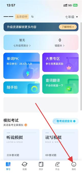 1、打開e聽說中學(xué)app,點(diǎn)擊底部導(dǎo)航欄的我的選項(xiàng)。
