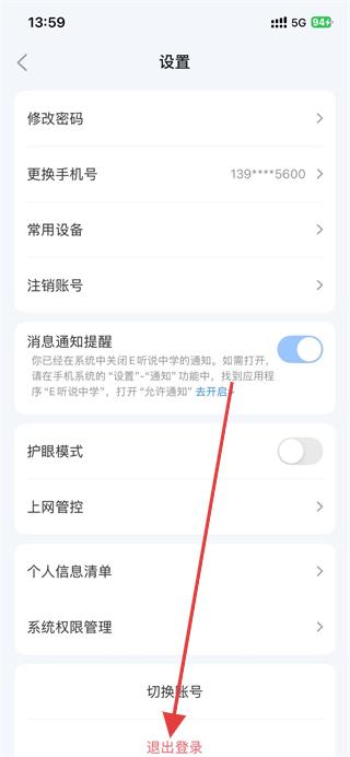 3、進(jìn)入設(shè)置頁面后,找到并點(diǎn)擊下方的退出登錄選項(xiàng)。