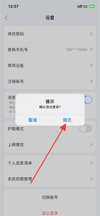 4、在彈出的提示框中,點(diǎn)擊確定,即可完成退出登錄。