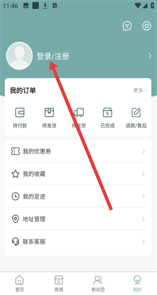 2、在個(gè)人中心頁(yè)面點(diǎn)擊“登錄/注冊(cè)”,進(jìn)入登錄注冊(cè)選擇頁(yè)面。