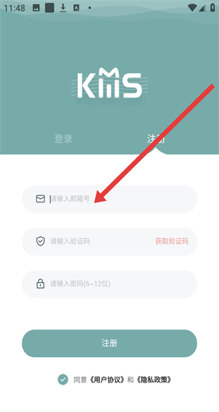 4、在注冊(cè)頁(yè)面輸入郵箱編號(hào),點(diǎn)擊“獲取驗(yàn)證碼”并輸入,設(shè)置密碼,點(diǎn)擊“注冊(cè)”,完成賬號(hào)注冊(cè)操作。