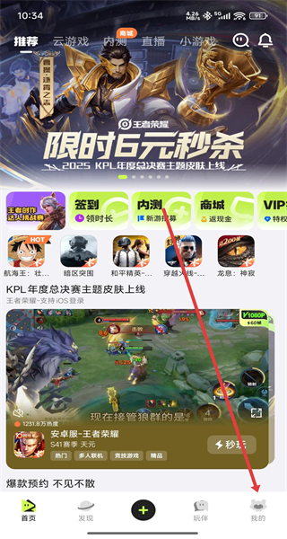 1、打開騰訊先游APP,點(diǎn)擊底部導(dǎo)航欄中的我的。