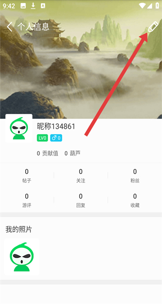 3、在個人信息頁面,點擊右上角的編輯圖標鉛筆形狀,進入編輯資料頁面。