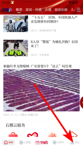 1、在石榴云新聞首頁(yè),點(diǎn)擊右下角我的選項(xiàng),進(jìn)入個(gè)人中心頁(yè)。