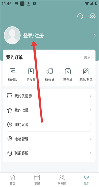 2、在我的主頁中,可以點擊上方登錄/注冊按鈕,準備進行登錄或注冊操作。