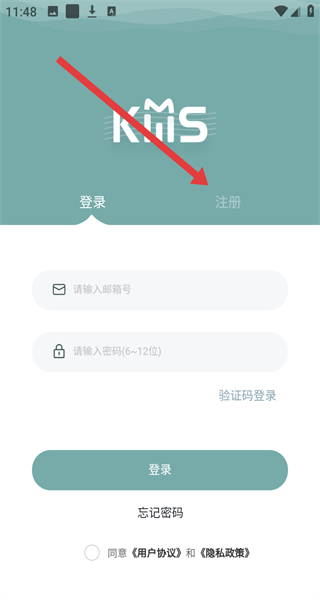 3、在進入到登錄頁面中,可以點擊右側(cè)注冊按鈕,切換進行注冊操作。