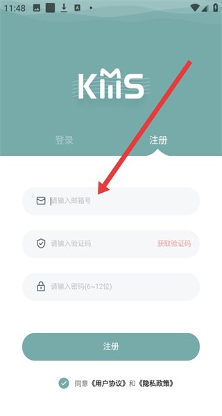 4、在切換到注冊界面時,點擊輸入框依次填寫對應(yīng)的注冊信息后,即可點擊注冊按鈕完成注冊。