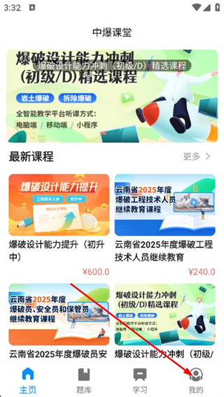 1、打開中爆課堂,點(diǎn)擊底部導(dǎo)航欄我的。