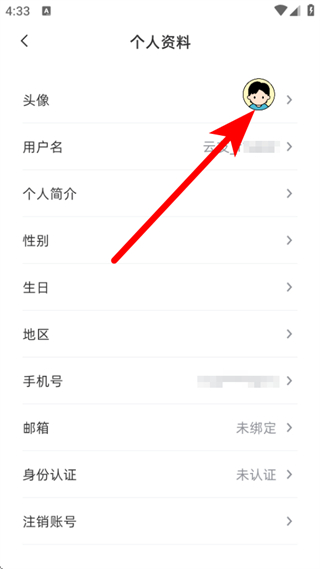 3、在個人資料的頁面,點擊頭像,彈出相冊上傳或拍照的選擇菜單。