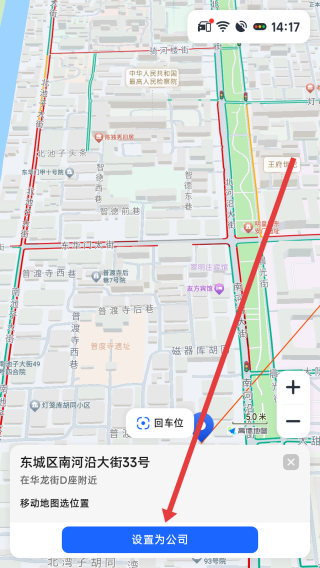 4、在地圖中,可以選擇當(dāng)前位置點(diǎn)擊下方設(shè)置為公司按鈕,完成設(shè)置公司地址操作。