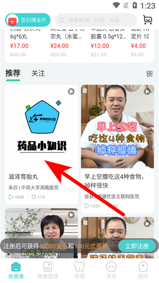 1、在亮健好藥網(wǎng)首頁,點擊亮健康選項,進入相關(guān)頁面。
