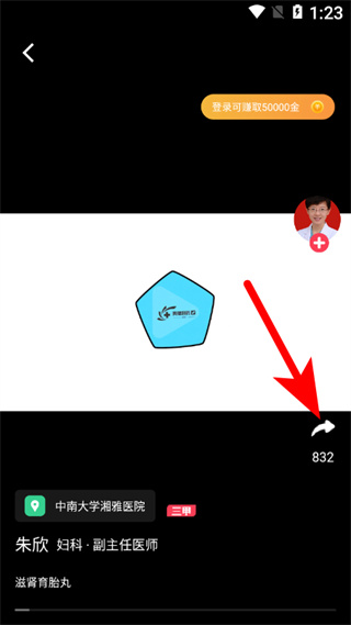 3、在視頻播放頁面,點擊分享圖標,彈出分享選項框。