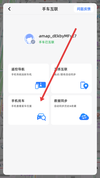 3、在進(jìn)入到手車(chē)互聯(lián)頁(yè)面中,可以點(diǎn)擊手機(jī)找車(chē)功能,尋找車(chē)輛位置。