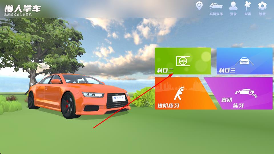 1、打開懶人學(xué)車APP,進(jìn)入主界面,點(diǎn)擊科目二選項(xiàng)。
