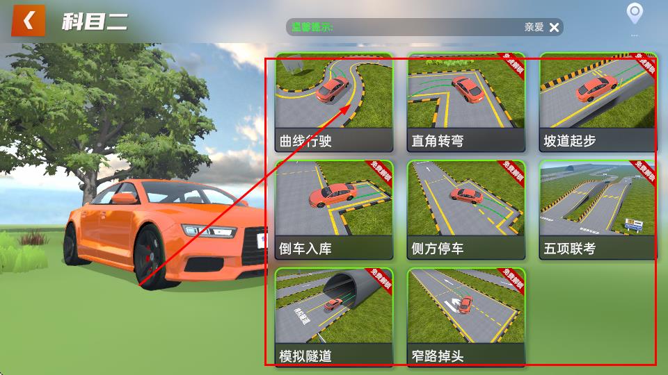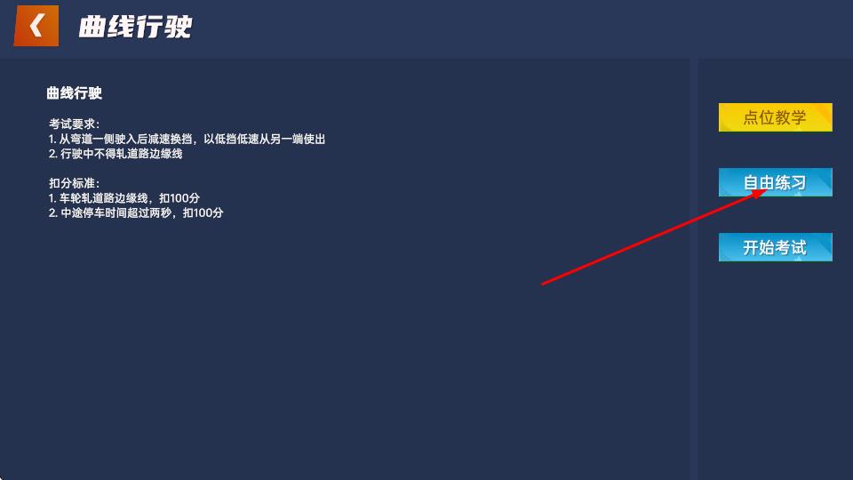 2、進(jìn)入科目二頁面后,選擇想要模擬駕駛的項(xiàng)目,如曲線行駛。