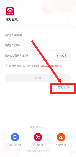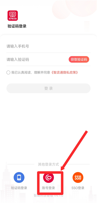 1、啟動智店通應用,在登錄界面選擇賬號登錄選項,進入賬號登錄頁面。