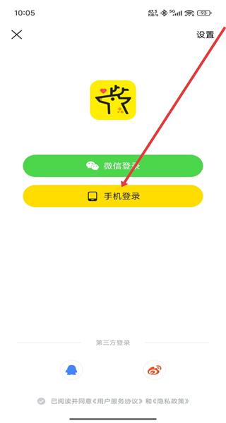 1、點擊“服務(wù)協(xié)議和隱私政策”彈窗的“同意并繼續(xù)”,進(jìn)入登錄選擇界面。