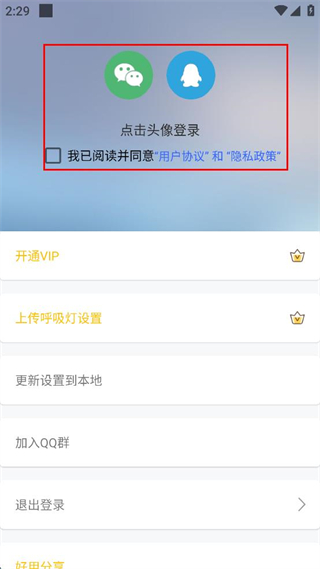 1、打開通知呼吸燈APP,點擊頭像進入登錄相關頁面。