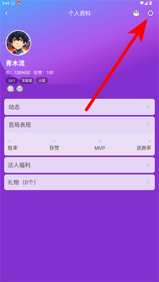 2、在個人資料頁面,點擊右上角的設置圖標,進入個人設置界面。