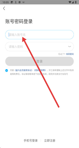 4、在賬號(hào)密碼登錄頁(yè),先在上方輸入框填寫賬號(hào),在下方輸入框填寫密碼,最后點(diǎn)擊登錄按鈕完成登錄。