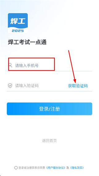 3、在登錄頁(yè)面的輸入框中,填寫手機(jī)號(hào)并獲取驗(yàn)證碼。