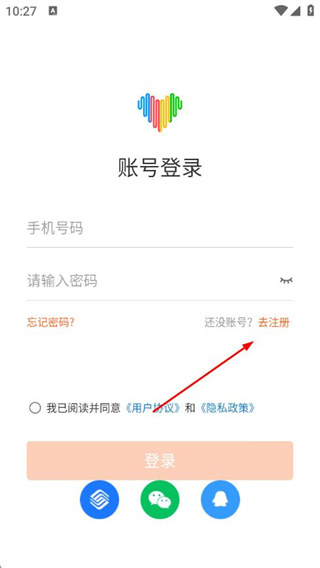 1、打開Wearfit Pro APP,在賬號登錄頁面點擊去注冊。