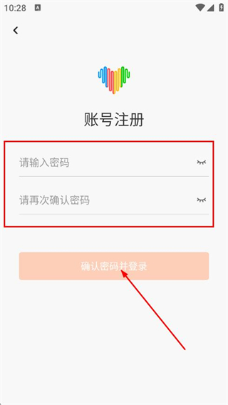3、輸入密碼并再次確認(rèn)密碼后,點擊確認(rèn)密碼并登錄,即可完成賬號注冊。